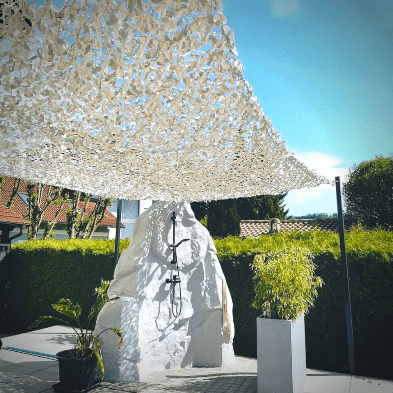 Le nostre reti mimetiche offrono un'ombreggiatura estetica e traspirante, ideale per terrazze, pergolati e giardini.